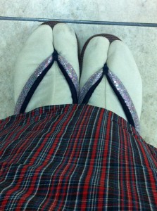 お知らせしたいこととは、新商品のことです。エクセーヌ(高級スエード調人工皮革)を使った防寒足袋が出来たのです。その名も「エクたび」!