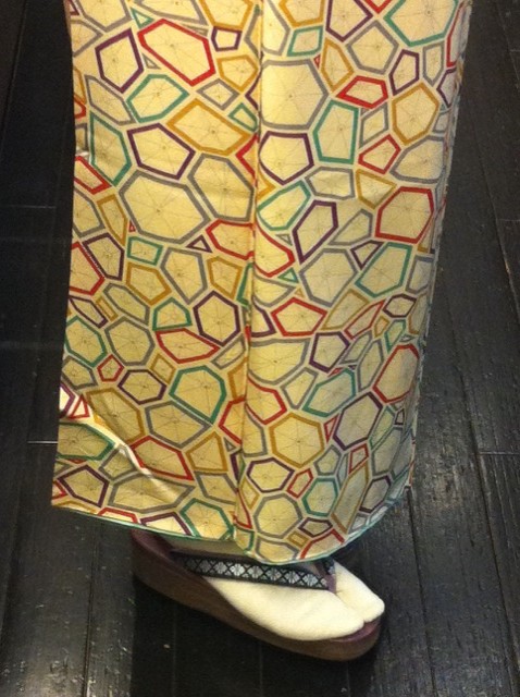 ちなみに、本日のコーディネイトは小紋に名古屋帯、カフェぞうり(博多織の鼻緒に紫の台)、エクたび(ベージュ)です。博多織の鼻緒で誂えたカフェぞうりは万能選手で、小紋にも紬にも合わせやすいので重宝しています。そして、エクたびはやはり暖かい!本日の寒さも何のそのという感じです。
