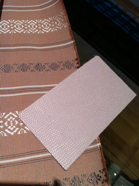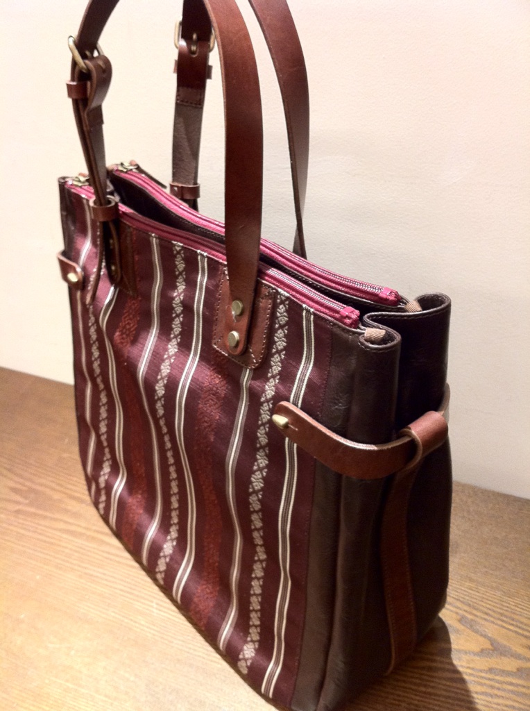 さて、本日も和らびのオーダー作品をご紹介致します。今回はエンジ色の献上博多織と藤桜色の牛型押し革の組み合わせです。昨日ご紹介した和らびと同じく、エンジ色の献上博多織を使っているのですが、革の色や素材感が違うだけで全く雰囲気が異なり、こちらの和らびは華やかなで柔らかい印象を受けますね。こちらも本当に素敵です。