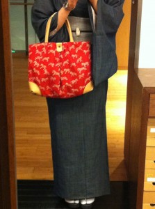 そして、バッグはジャミロのゼブラス柄(赤)を合わせてみましたがいかがでしょうか?赤は敬遠されがちですが、着物の色を選ばず、しかもさし色になるので使いやすいですよ。