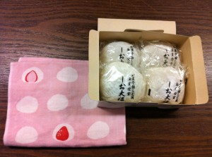 幸せのお裾分け 本日ご来店下さったお客様から、見るからに美味しそうな塩大福の差し入れを頂きました。本当にありがとうございました。 私のお気に入りの手拭いと共に一枚……。どれだけ大福が好きなのでしょうか?(笑) Tweet