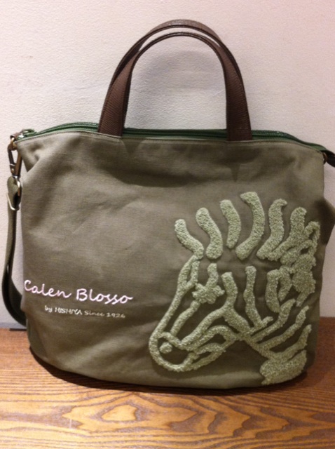 焦げ茶色とカーキ色というアースカラーをもとに、刺繍のシマウマの色や革の色で違う表情を見せている心憎いバッグです。