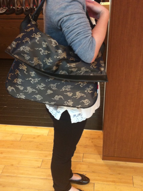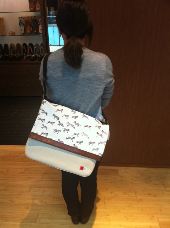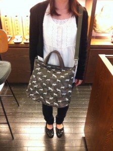 さて、本日は人気のバッグ「グレーザ」(税込11,550円)入荷のお知らせです。前回は綿素材でしたが、今回はナイロン素材です。素材が変わるだけで雰囲気も変わり、同じ形のバッグだと気付かないお客様もいるほどです。