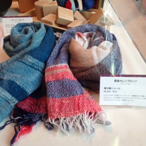 その一環としてPLAZAの地下1階にて、他店舗様の商品と共に、ヴァレンタインのディスプレイをおこなっています。菱屋のオリジナル商品ではありませんが、フェアをおこなうと大人気のtamaki niimeの播州織ストールをディスプレイしていただきました。