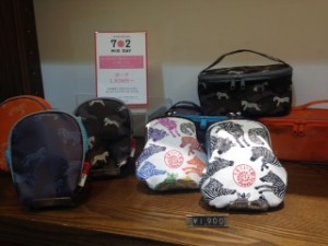 当店でも、まんなかの日にちなんで「あなたのバッグのまんなかに入れて欲しい」ということで、ポーチのコーナーを作りました。